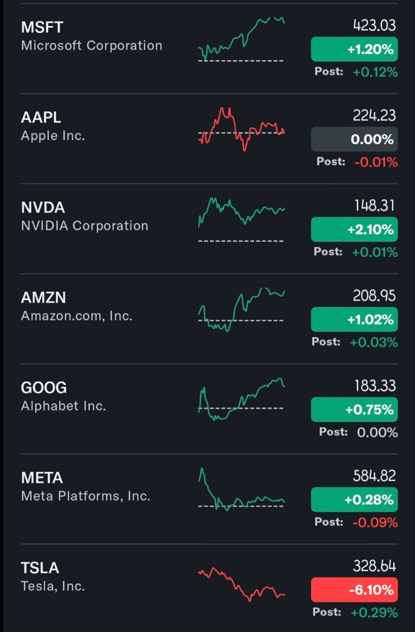 - 테슬라, 금융주 하락하고 메가7 종목들은 반등