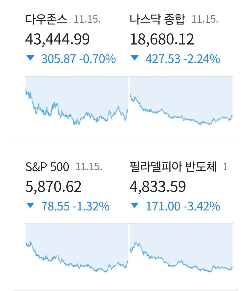 11월 16일 시황. 미 증시 하락. 한국 지표는 상승