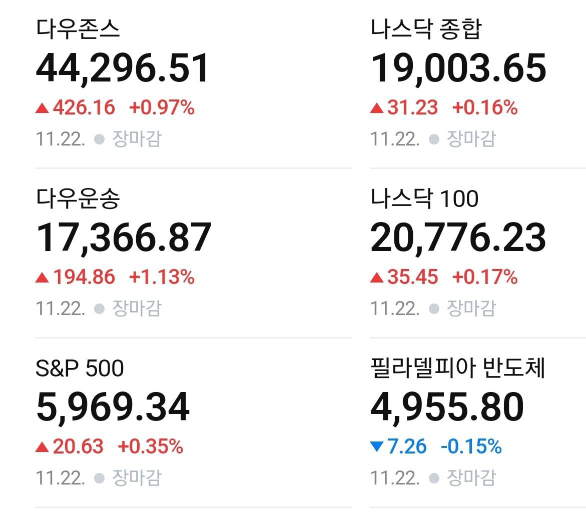 - 11/25 미 증시, 전일에 이어 지표 호전을 바탕으로 중소형 종목 중심의 상승 지속