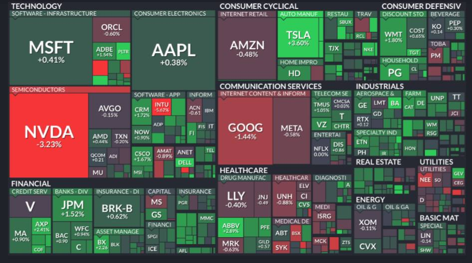 - 세금 소프트웨어 업체인 인튜이트(-5.68%)는 기대 매출 부진 여파로 하락.