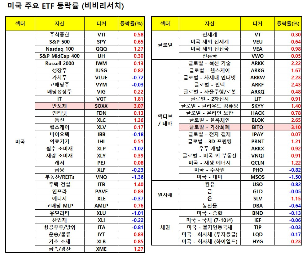 *특징 종목: 반도체, 양자, 비트코인 강세