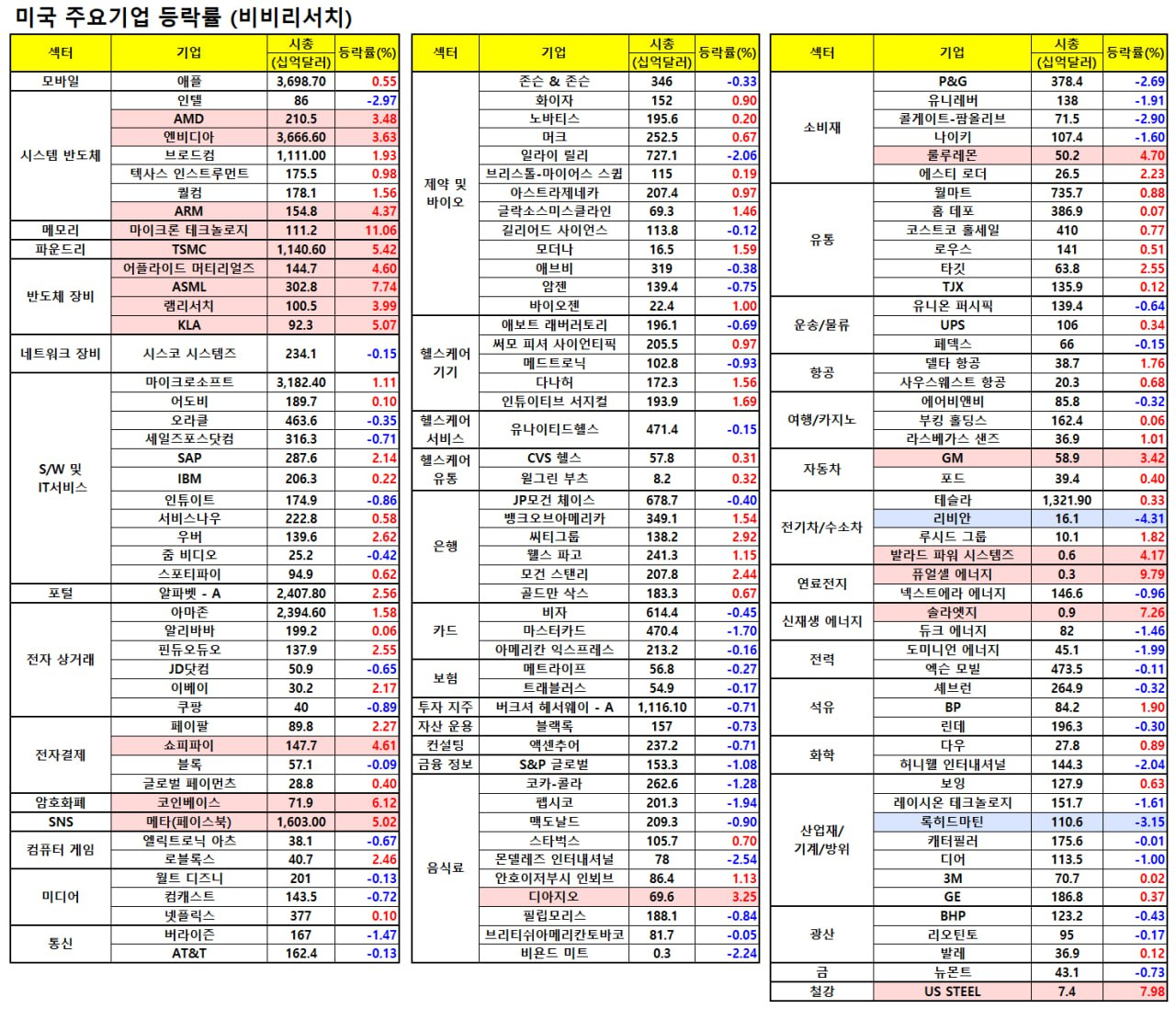 - 씨티그룹(+2.45%)은 웰스파고가 지배적인 선택 리스트에 포함하자 강세.