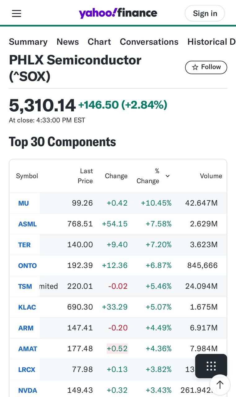 - 마이크론 10%, 슈퍼마이크로 8%, ASML 7% 등 강세