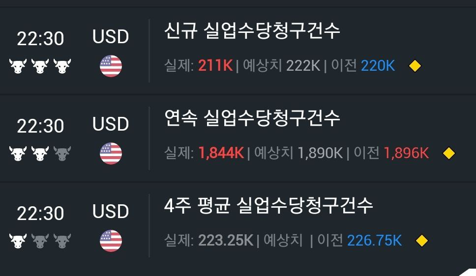 - 미국 신규실업수당 청구건수는 이전 22.0만 건에서 21.1만 건으로 감소해 시장 예상(+22.1만 건)보다 감소.