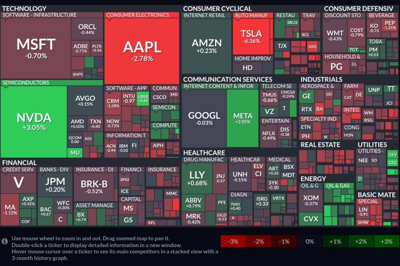 - - AI 대장주인 엔비디아는 투자은행 룹 캐피털의 호평에 힘입어 약 3% 상승, 테슬라 시장 예상을 밑도는 판매 실적 공개 후 약 6% 하락