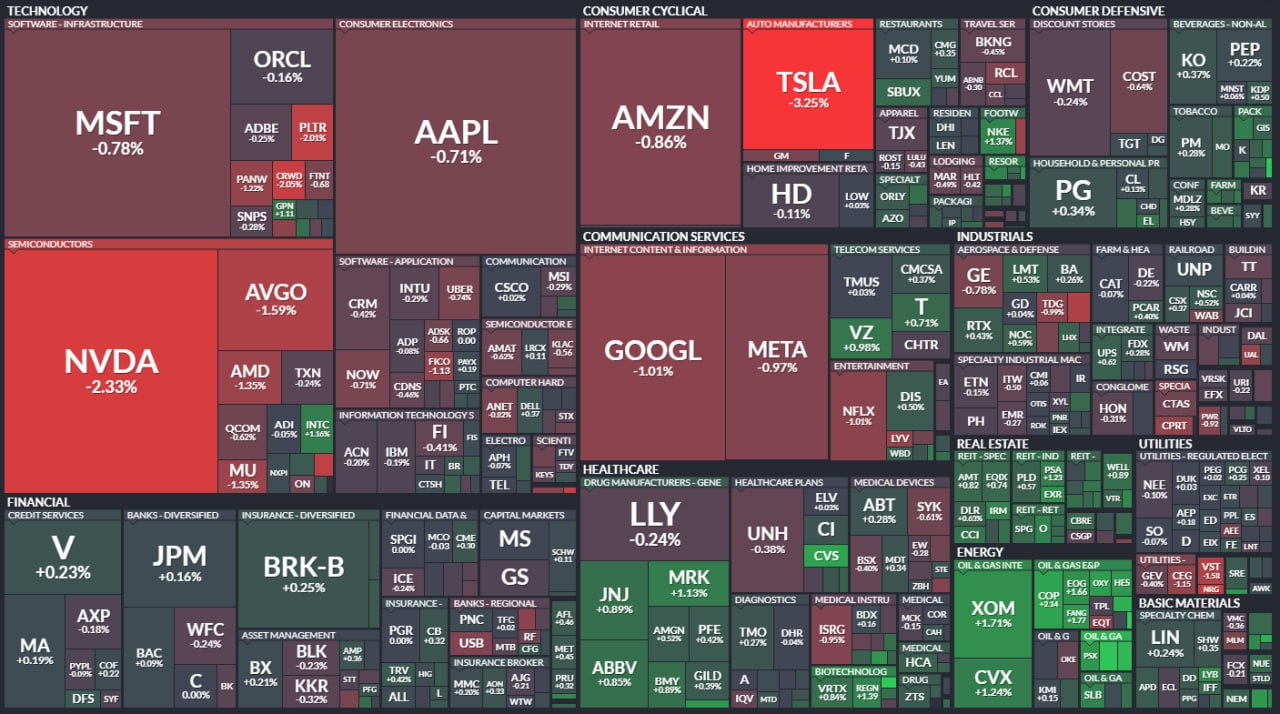 - 섹터 퍼포먼스: 11개 섹터 중 6개 상승 마감. 에너지는 상승 주도하며 1.32% 상승. 기술은 가장 부진하며 0.84% 하락.