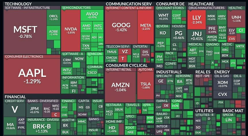 • 개장 전 바이든 대통령이 반도체 칩 제조와 R&D 촉진을 위한 자금 지원을 강조했고/ 브로드컴이 AI 낙관론에 힘입어 급등하면서 반도체 업종이 강세를 보였습니다