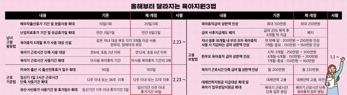 육아 3법은 최근 육아휴직과 관련하여 중요한 법률 개정 사항입니다.