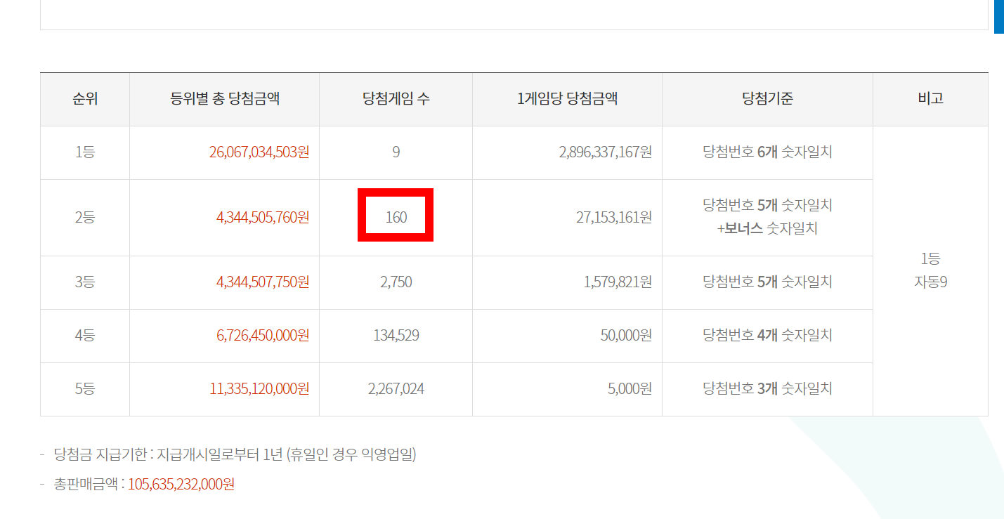 - 특히 이번 회차에서는 2등 당첨자가 무려 160명이나 나와 이목을 끈다.