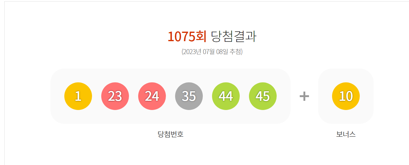 - 1등 당첨 번호가 '1, 23, 24, 35, 44, 45'로 발표됐다.