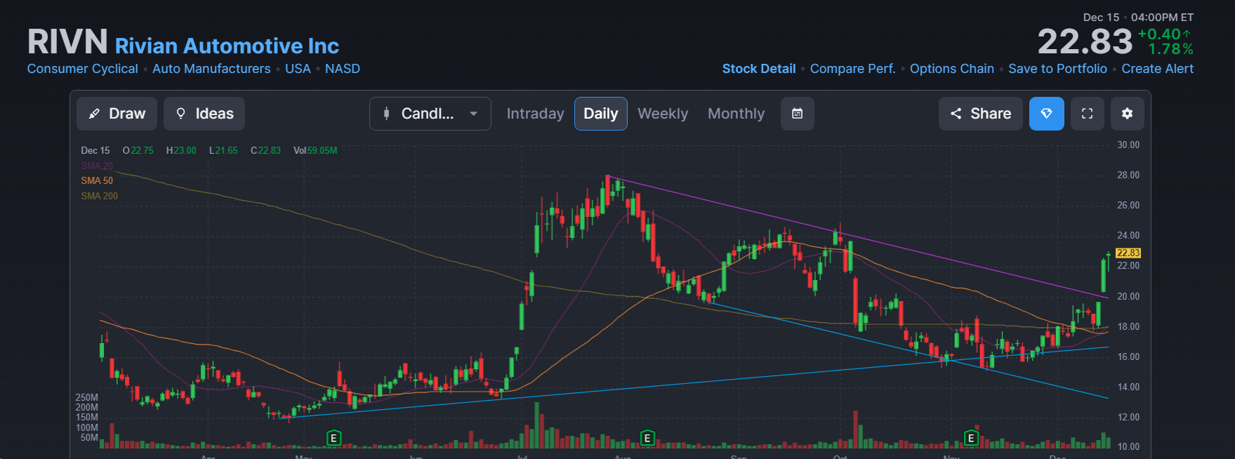 - 리비안은 비교적 젊은 회사로 아직 생산 및 성장 초기 단계에 있습니다. 주가는 변동성이 심했으나 최근 몇 달간 회복세를 보이고 있다.