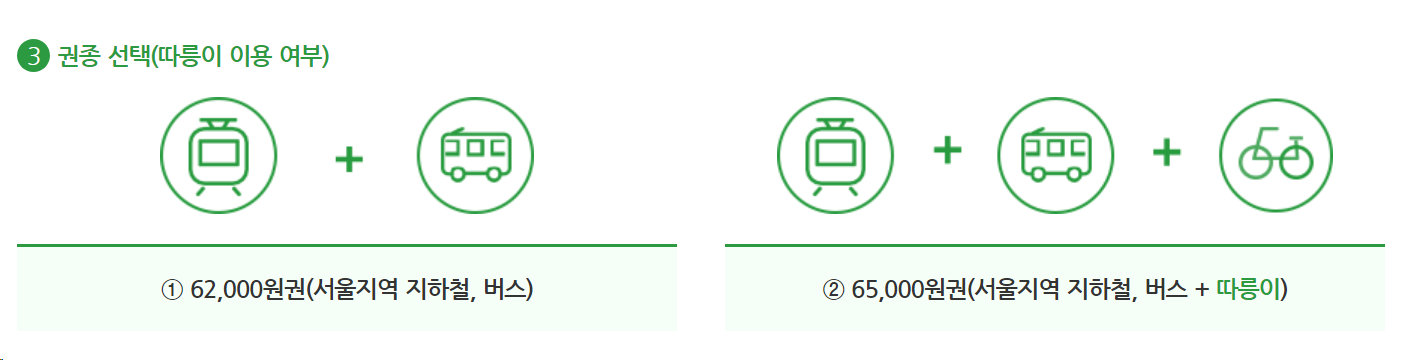 •  따릉이 이용 여부에 따라 6만5천원권과 6만2천원권 2종으로 나뉜다.