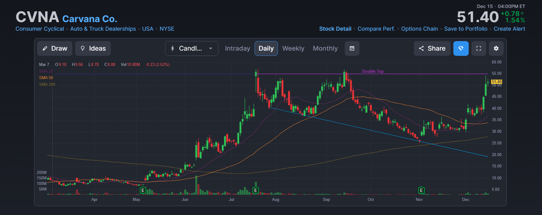 - CVNA는 미국의 온라인 중고차 소매 업체입니다.