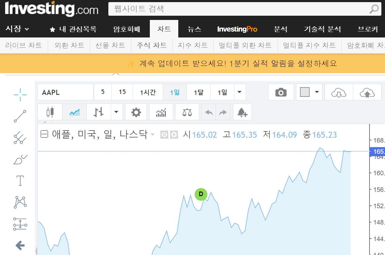 미국 주식 투자하시면서 영어가 어려운 분들은 인베스팅 닷컴 한국어 사이트, 그림으로 볼 수 있는 핀비즈를 보시면 됩니다. 여러분들의 성공적인 투자가 되시기를 기원드립니다.
