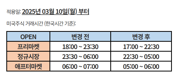 - 2025년 미국 주식시장의 서머타임은 3월 10일(월)부터 적용됩니다.