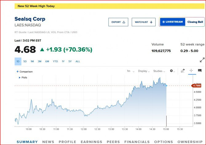 - 미국 뉴욕증시에서 실스크(Sealsq)가 한꺼번에 78% 폭발했다.