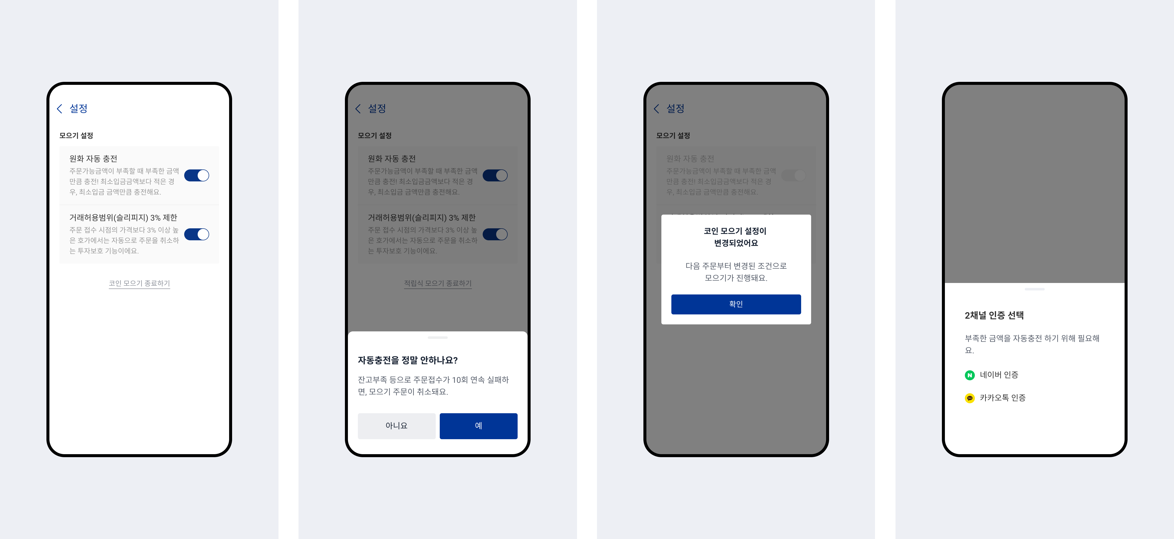 2. '코인 모으기 종료하기' 선택 시 신청한 자동주문 건이 종료되오니 한 번 더 확인 후 진행해 주시기 바랍니다.