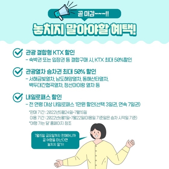- 이번 여름, 기차 타고 산과 바다로 즐거운 여행 떠나 보세요!
