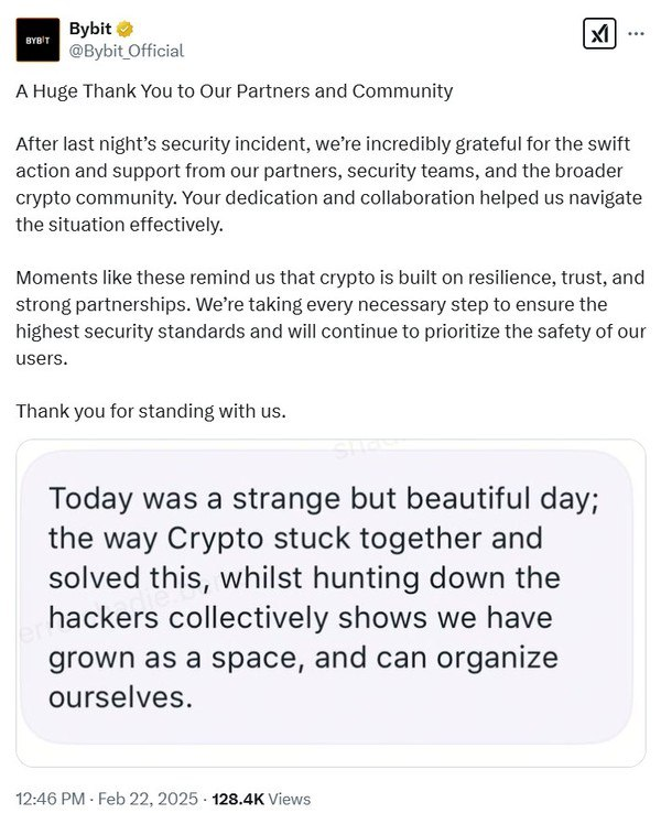 - 바이비트 해킹 사실을 처음 파악한 블록체인 보안 전문가 잭XBT가 텔레그램 채널을 통해 “바이비트를 해킹한 북한의 라자루스 그룹이 탈취 자금을 새 주소로 이체하고 암호화폐 트랜잭션 믹싱 플랫폼 eXch를 통해 세탁하기 시작했다.