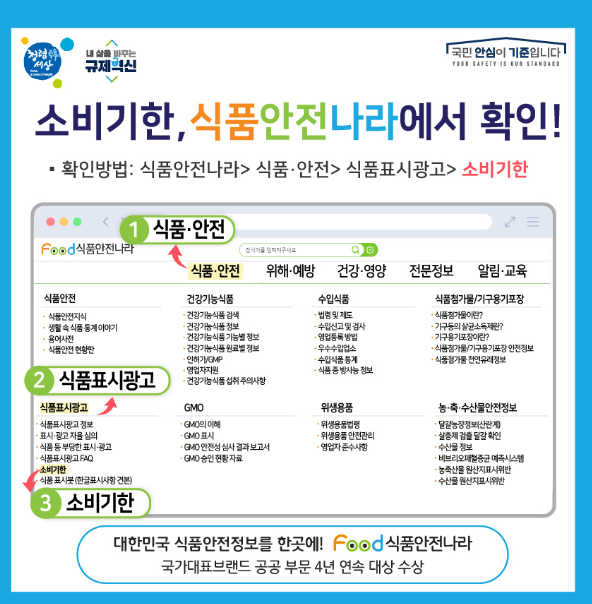 - "식약처는 소비기한 표시제도의 안정적 정착을 유도하기 위해 현재 소비기한 설정 실험이 진행 중인 품목에 대한 소비기한 참고값을 순차적으로 공개할 예정이며,