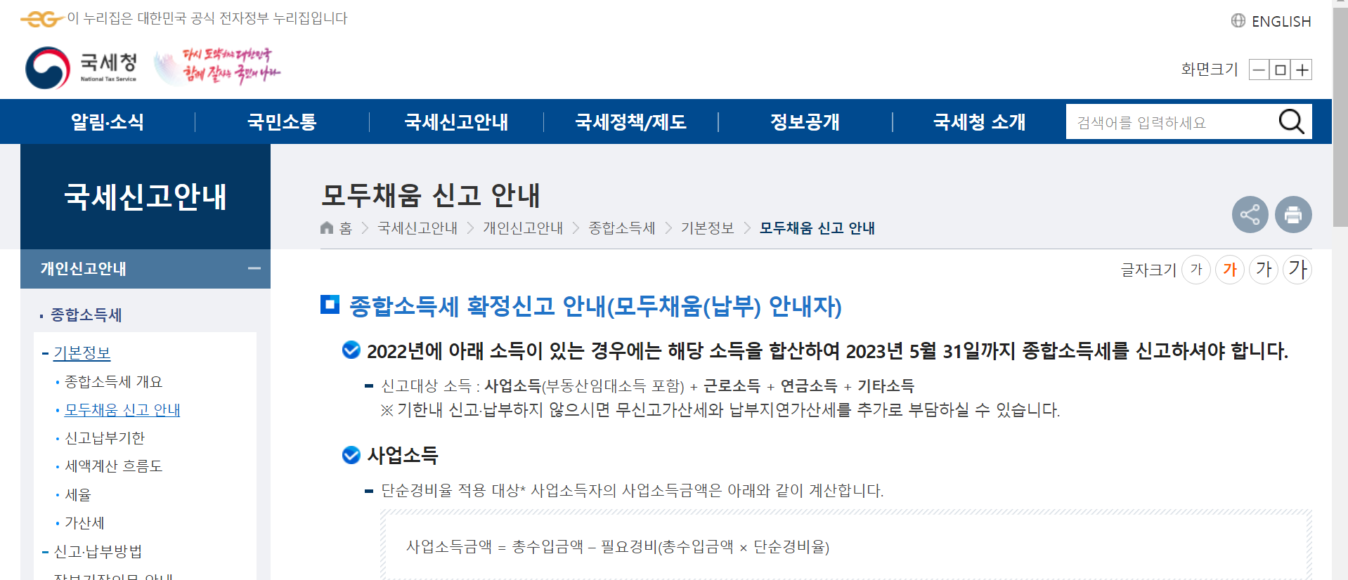 쉬운 종합 소득세 신고방법