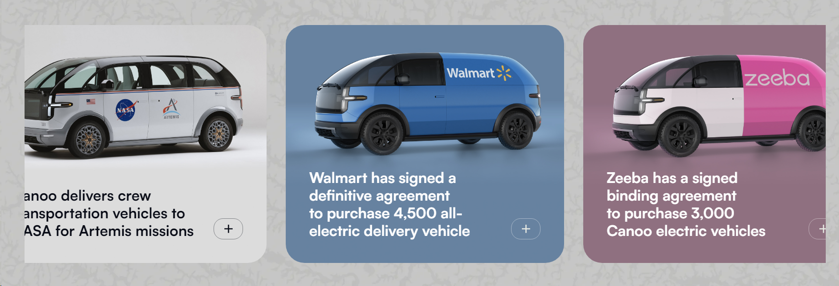 - 사진을 포함한 Canoo 언론 자료를 보려면 press.canoo.com을 방문하세요 .