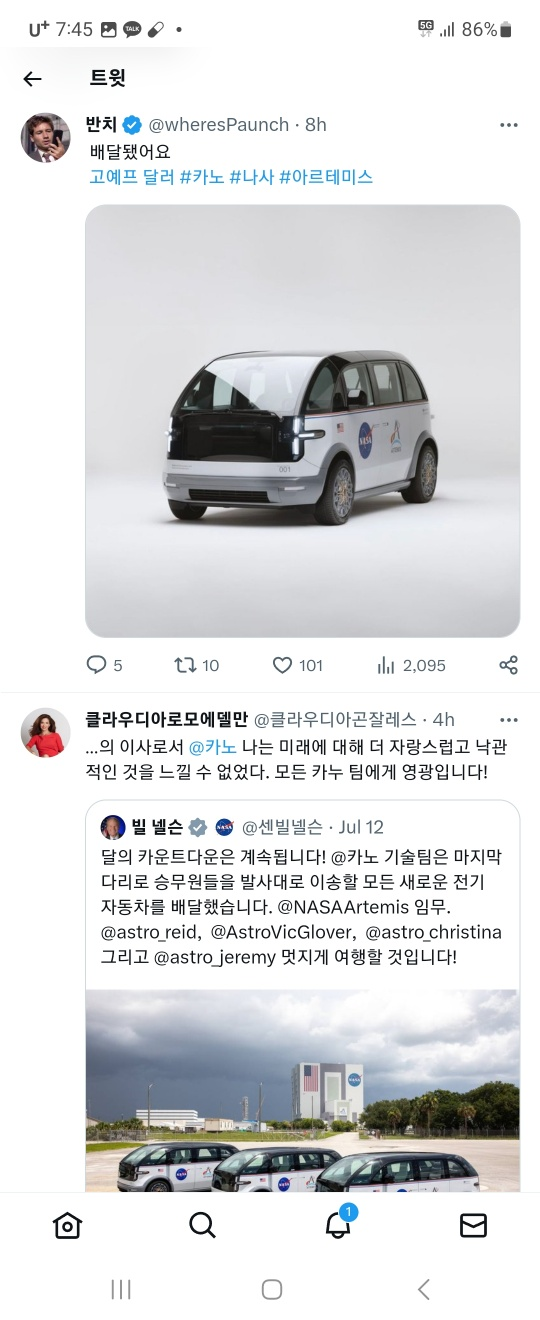 "오늘은 모든 발사의 첫 9마일 동안 우주 비행사를 수송하기 위해 우리의 역할을 수행하기 위해 열심히 일한 Canoo와 모든 파트너에게 매우 자랑스러운 날입니다."