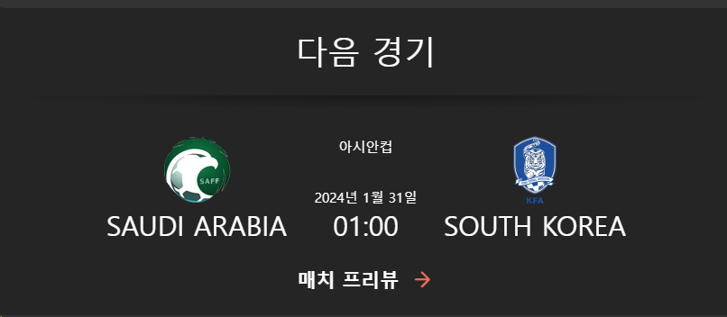 - 한국은 이번 대회 대진에 따라 F조 1위를 차지한 사우디와 31일 오전 1시 8강 진출을 다툰다.