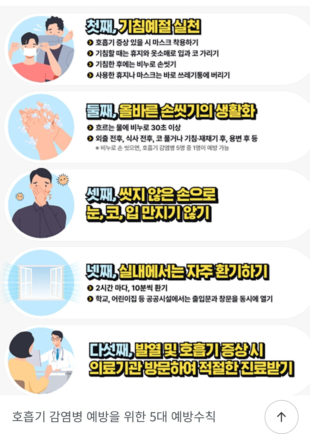 - 질병청 관계자는 "호흡기 바이러스는 주로 겨울철에 유행하지만 코로나19는 최근 2년간 7~8월에도 유행해 8월 말까지는 코로나 환자가 증가할 것으로 예상된다"며 “실내 환기, 손 씻기, 마스크 착용 등 감염병 예방 수칙 준수가 무엇보다 중요하다”고 강조했다.