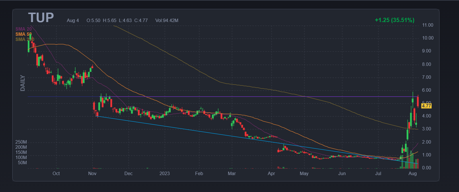 - 나는 오늘 Tupperware 주식을 추적하고 있습니다. 정말 날아다녔습니다.