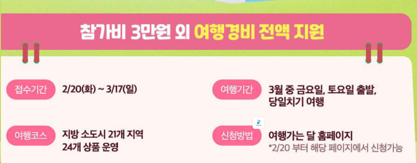 - 수도권 외 지역과 인구 감소가 심각한 지방으로 여행을 가도록 다채로운 이벤트를 준비했다.