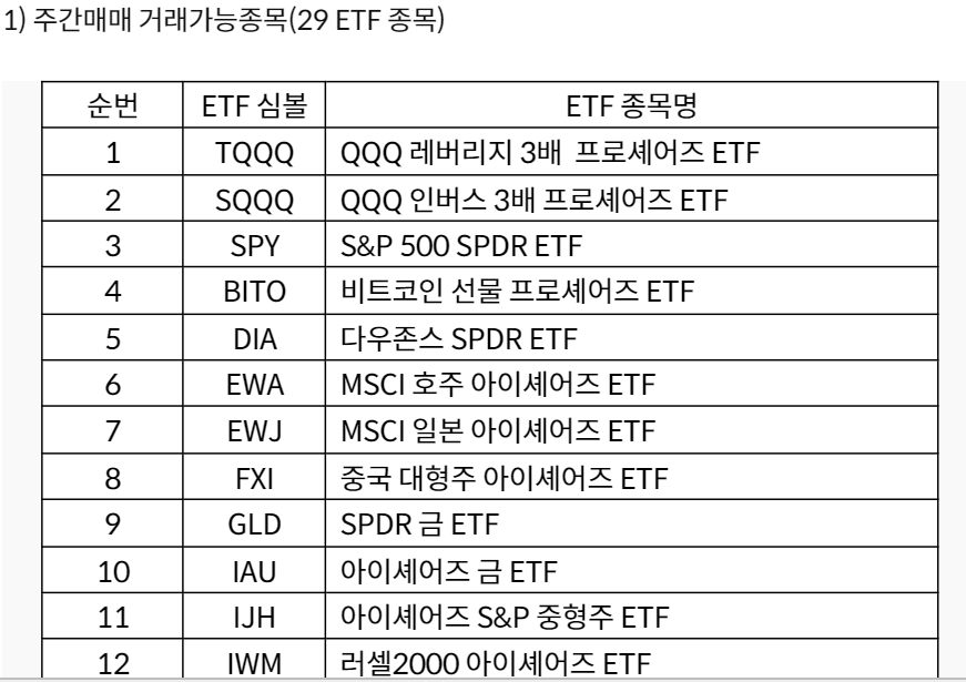 - 거래가능 종목 (티커 기준, 29종목)