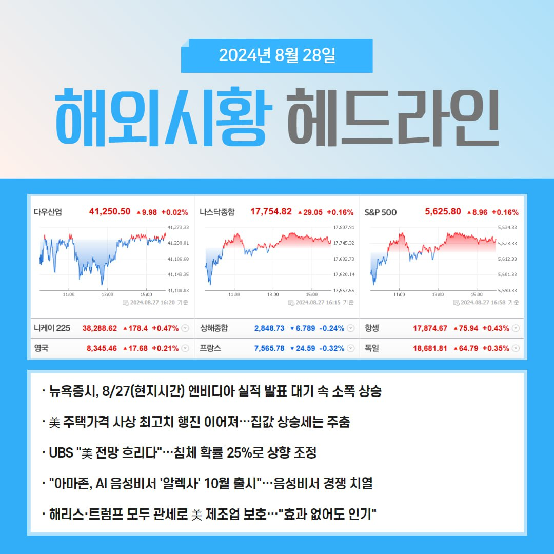 | 8/27 개장전 꼭 알아야할 5가지 Bloomberg (1) | 2024.08.27 |