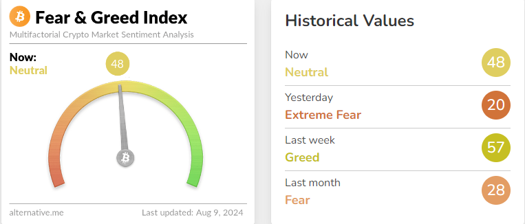 - 암호화폐 데이터 제공 업체 알터너티브(Alternative)의 자체 추산 '공포·탐욕 지수'가 전날보다 28포인트 오른 48을 기록했다.