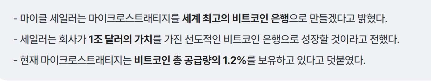 - 그 결과, 주당 비트코인 보유량이 증가해 주주들에게 긍정적인 영향을 미쳤다.