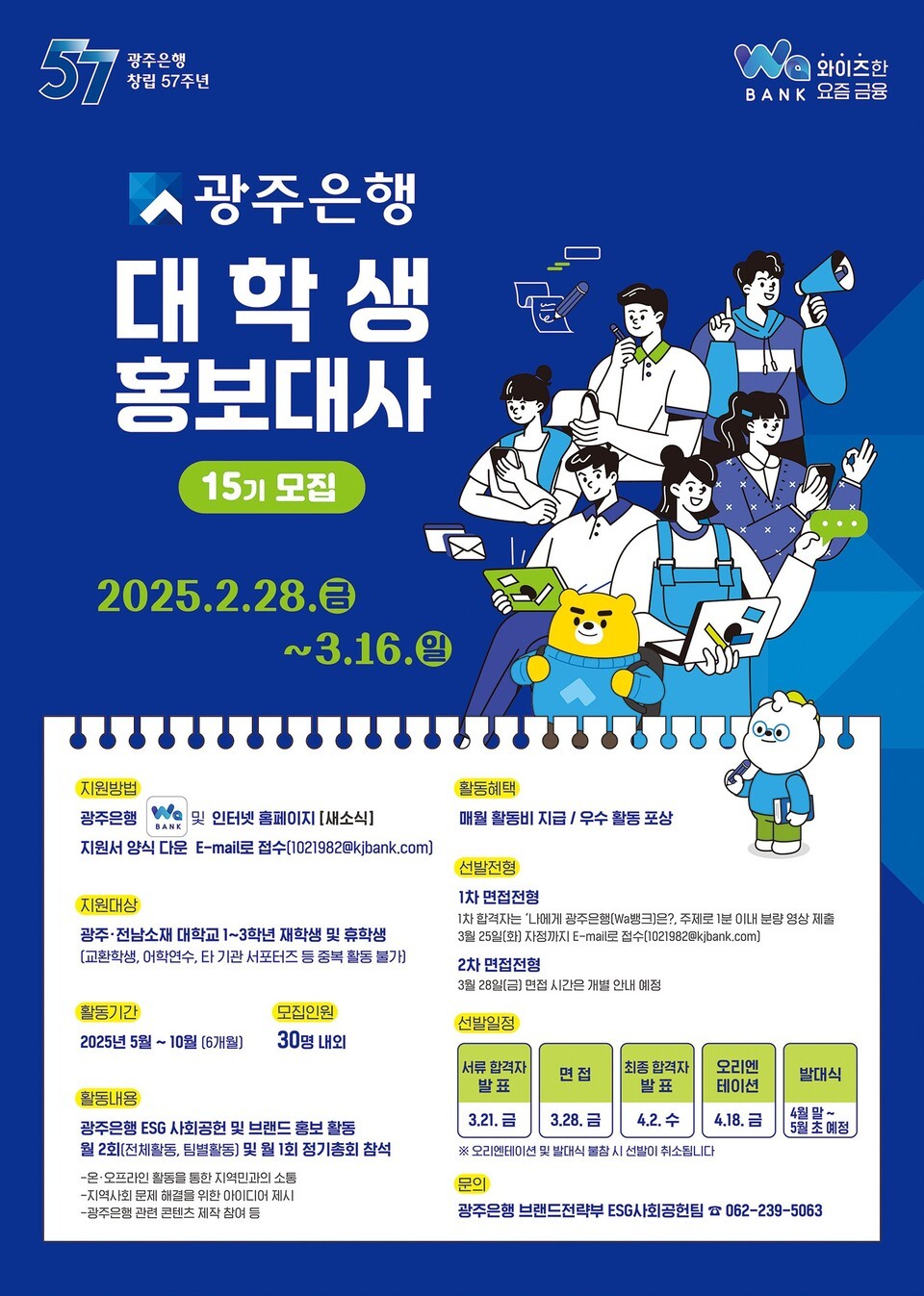 광주은행의 대학생 홍보대사 모집은 2025년 2월 28일부터 3월 16일까지 진행됩니다.