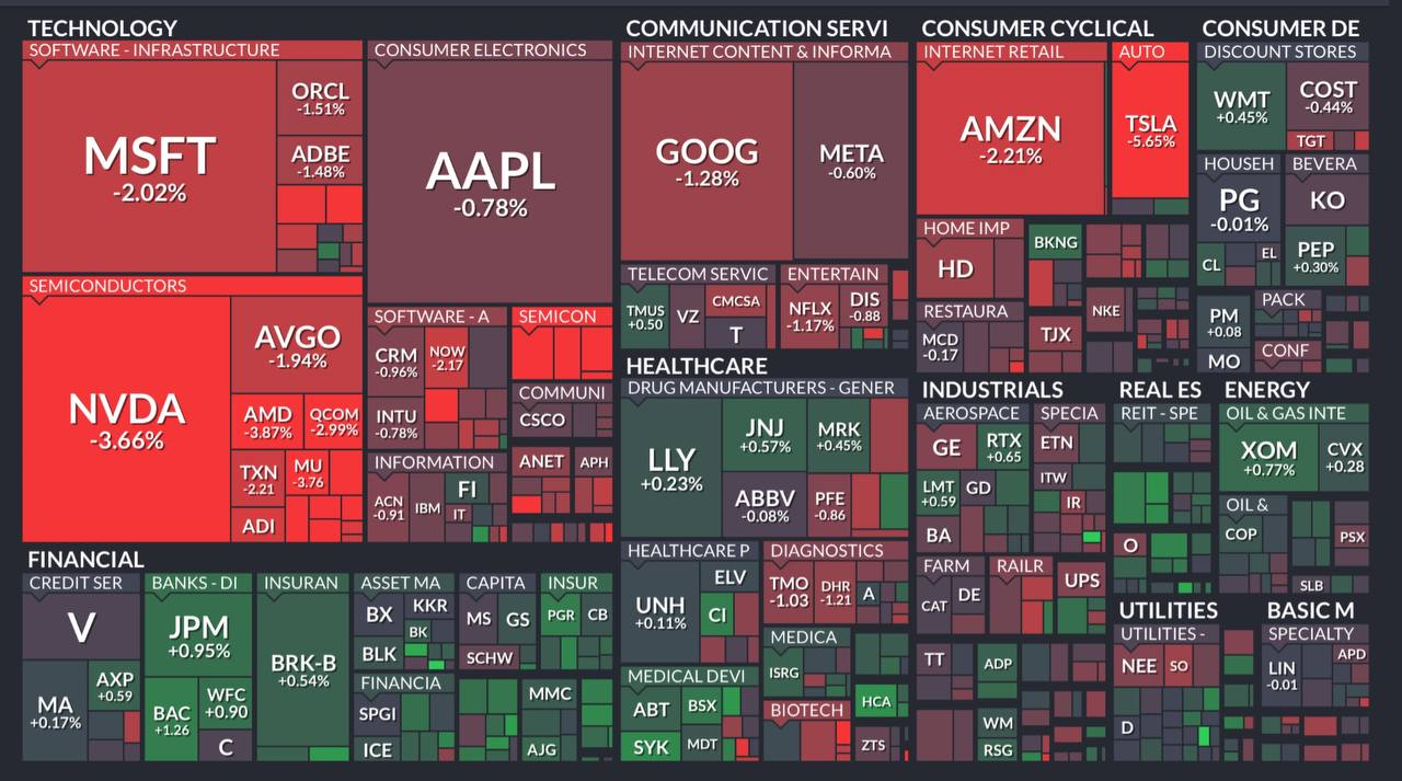 특히 엔비디아 -3.6%, 테슬라 -5.6% 하락 주도