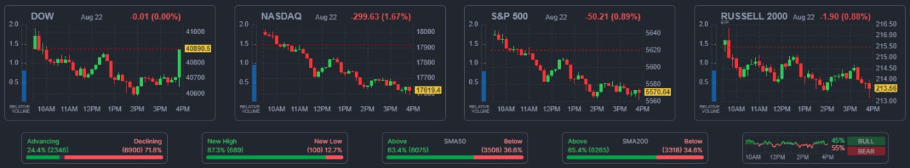 - 08/23 미 증시, 잭슨홀 컨퍼런스 앞두고 매물 소화하며 하락