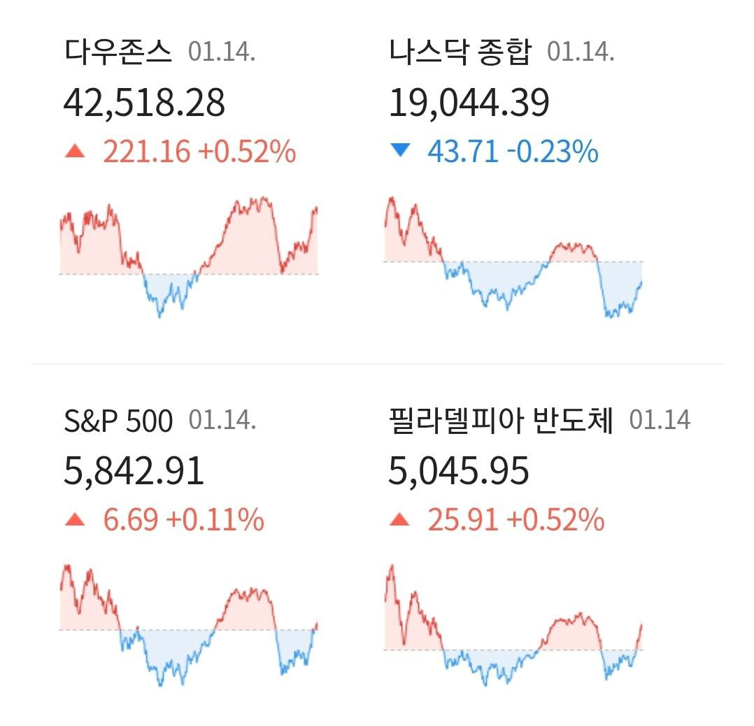 - 01/15 미 증시, 대형 기술주 부진에도 중소형주 강세에 힘입어 혼조 마감