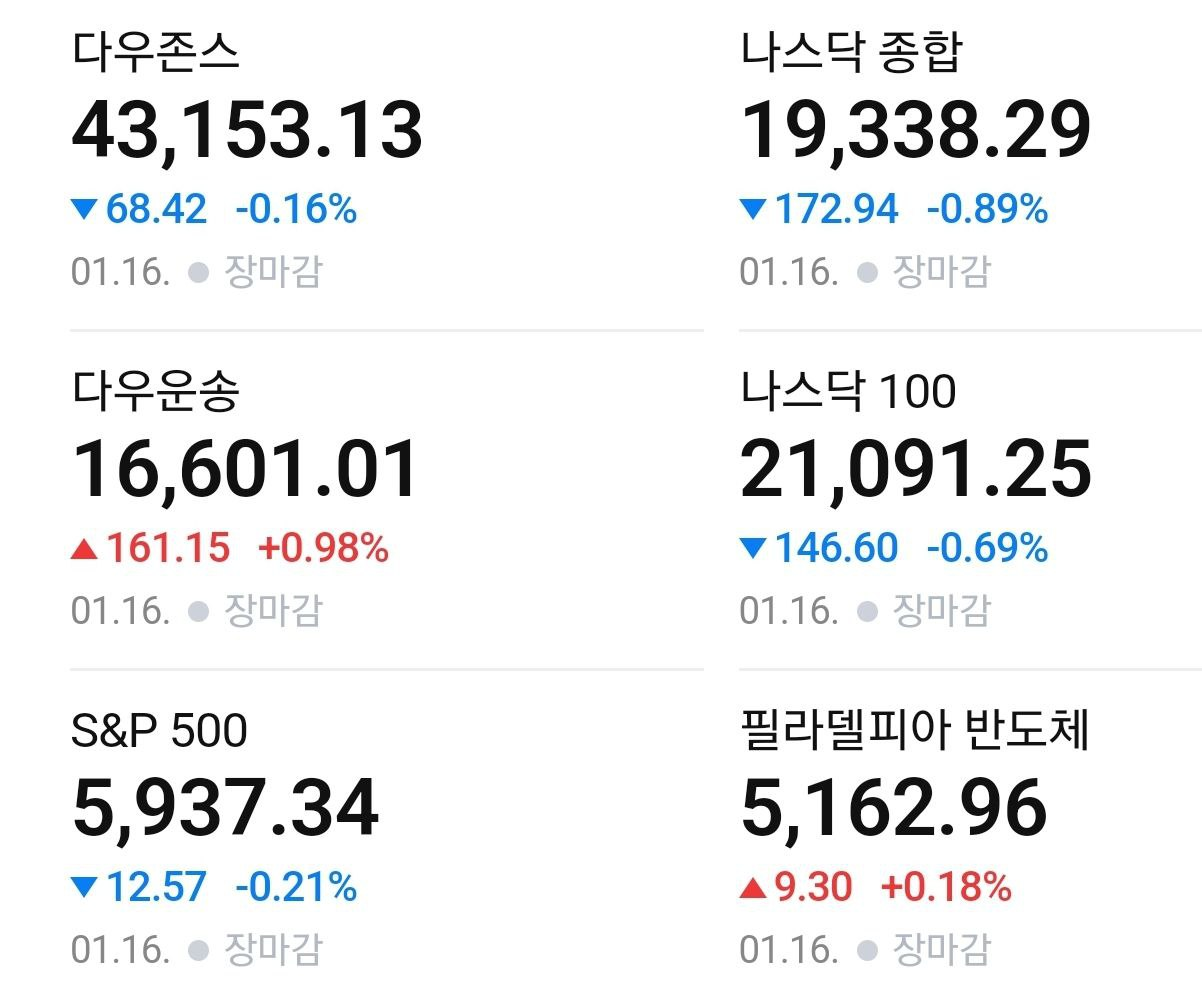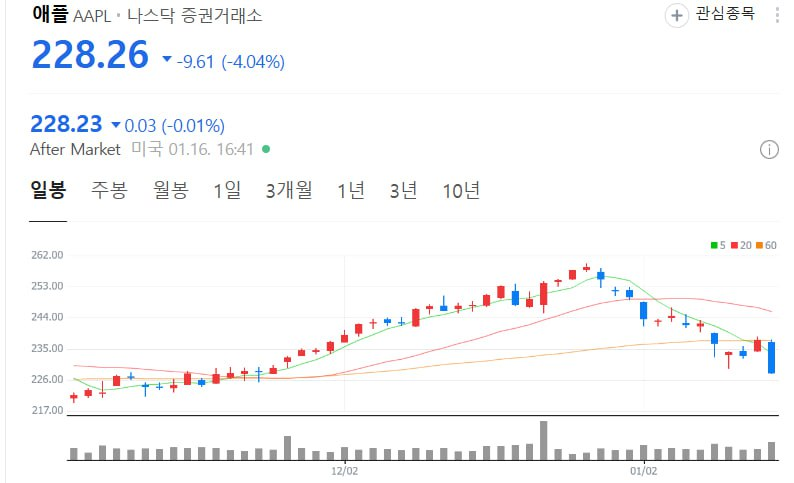 - 01/17 미 증시, TSMC에 힘입어 상승 후 애플, 테슬라와 옵션만기일 영향에 하락 마감