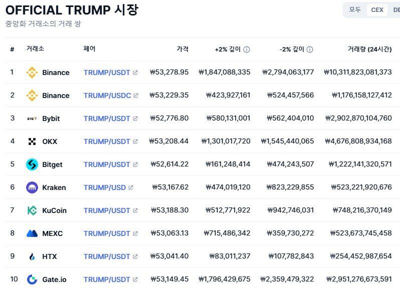 - 미국 대통령의 밈코인 트럼프(TRUMP), 시장 논란 가열