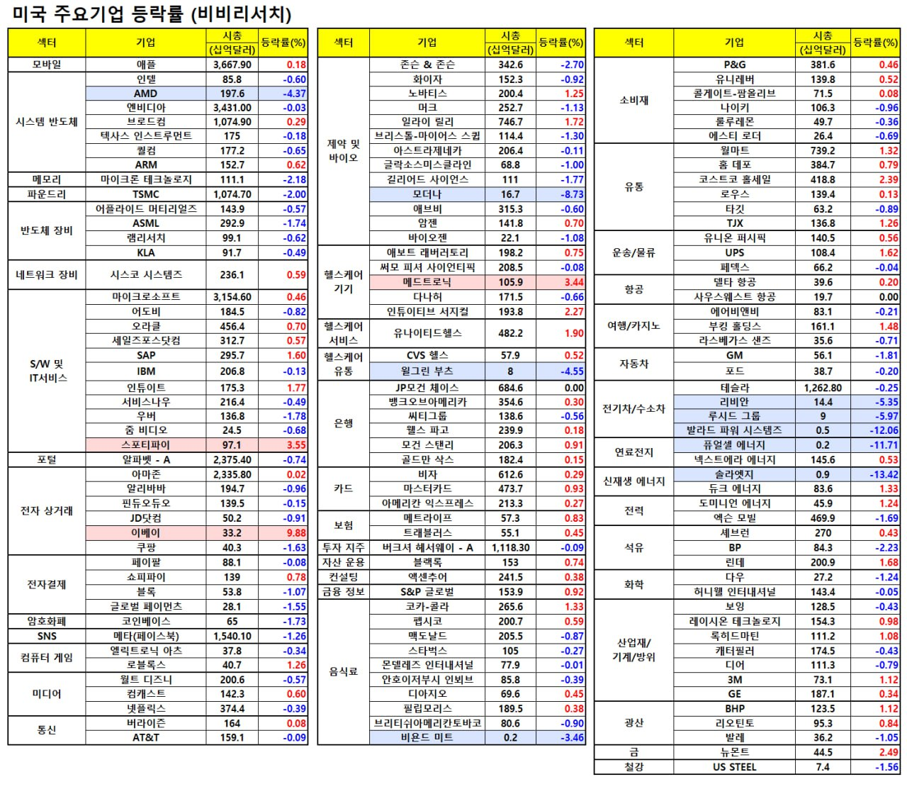 - 서비스나우(-0.48%)는 하락했지만 세일즈포스(+0.61%), 오라클(+0.69%) 등 소프트웨어 업종도 강세.