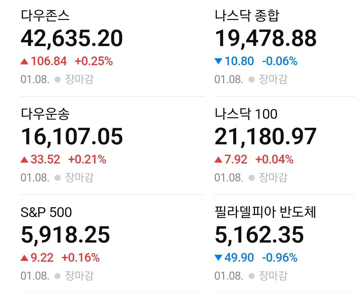 - 01/09 미 증시, FOMC 의사록 공개 후 금리가 하락하자 다우는 상승, 나스닥도 낙폭 축소