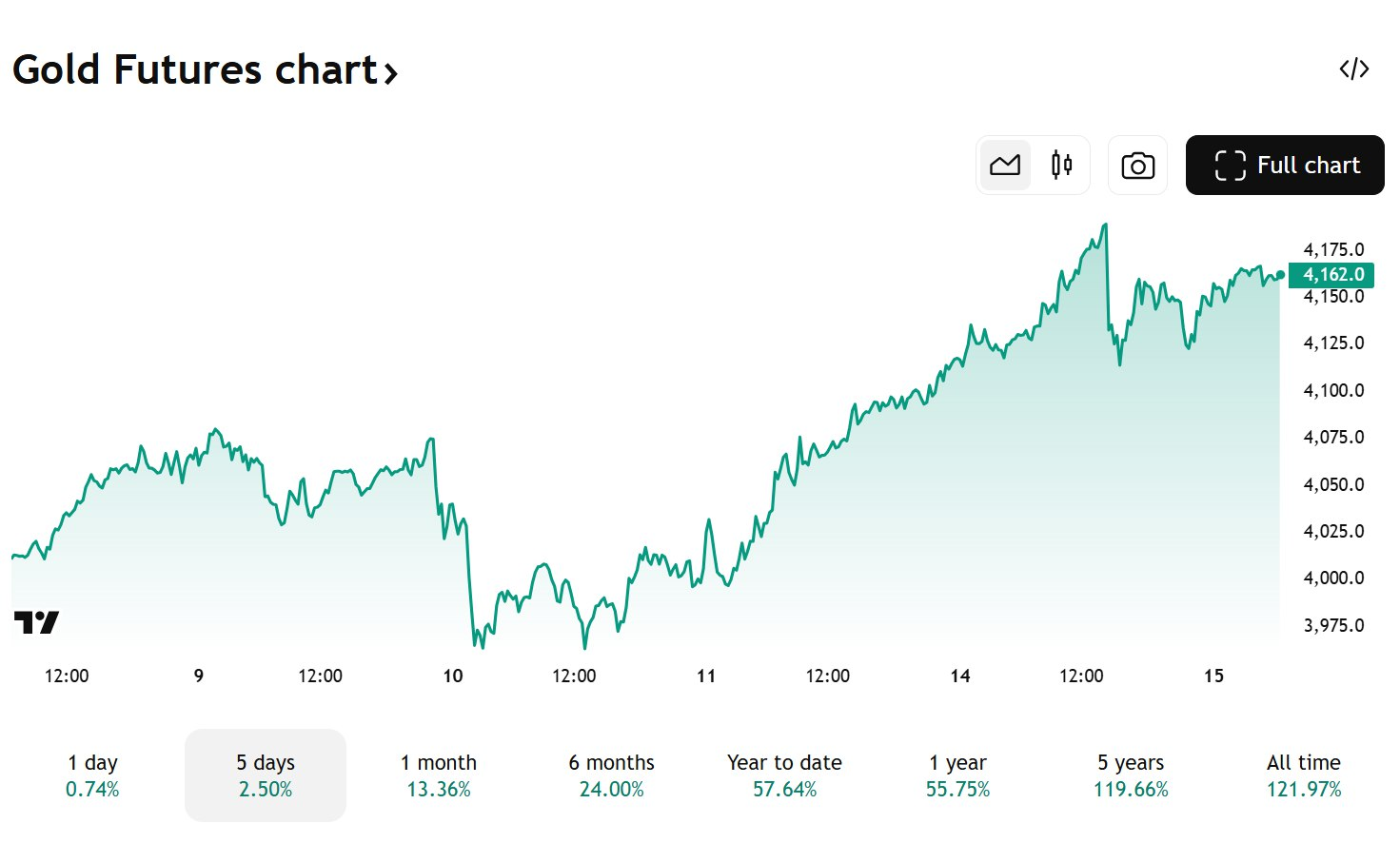 11,COMEX 금 선물은 온스당 0.64% 상승한 4159.6달러에, COMEX 은 선물은 0.17% 하락한 온스당 50.345달러에 마감했습니다.