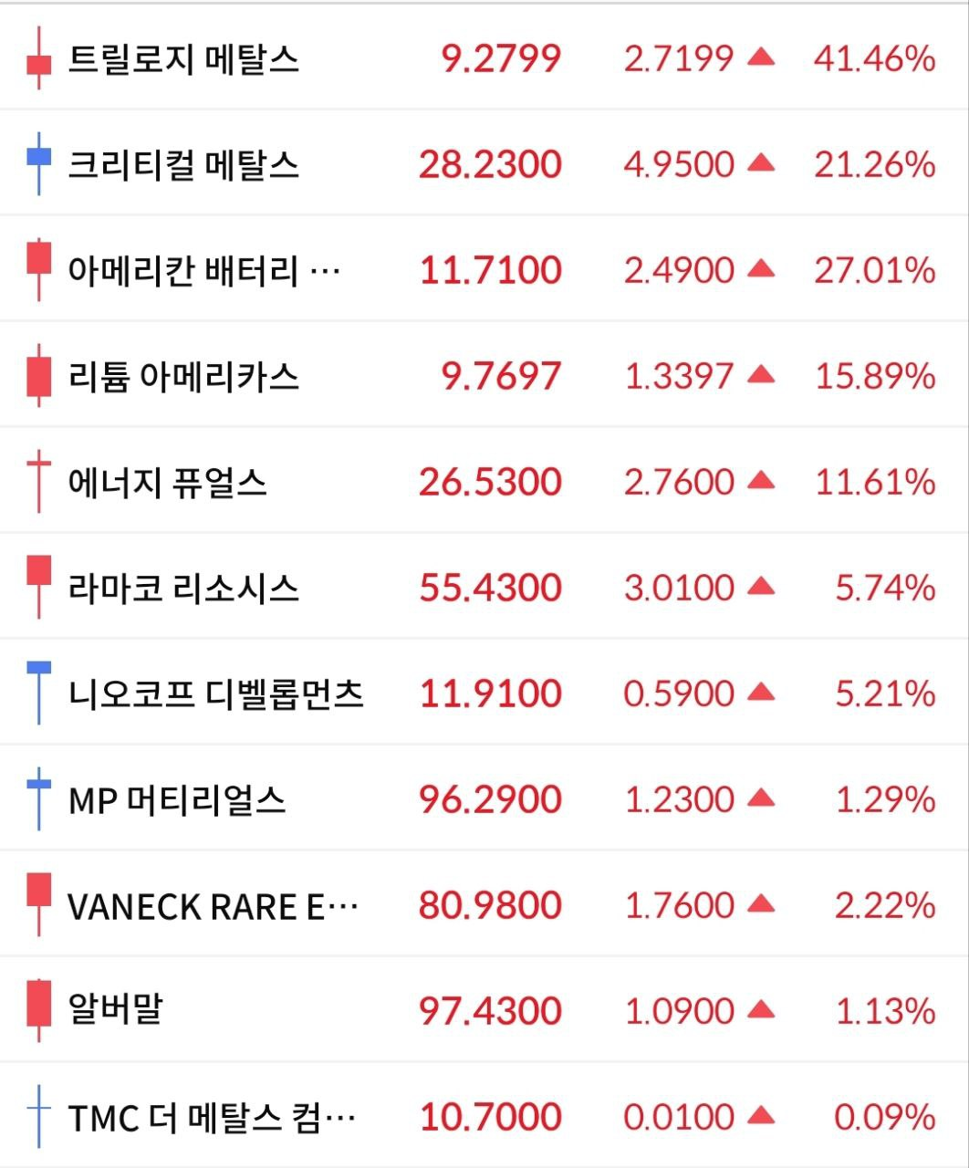 - 앨버말(-0.10%)도 소폭 하락했지만 리튬아메리카(+19.22%)는 옵션 거래량 증가로 인해 급등