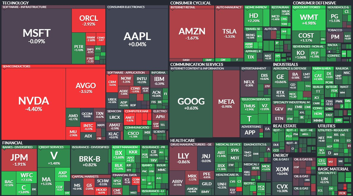 *특징 종목: 엔비디아, 브로드컴 하락 Vs. 월마트 상승