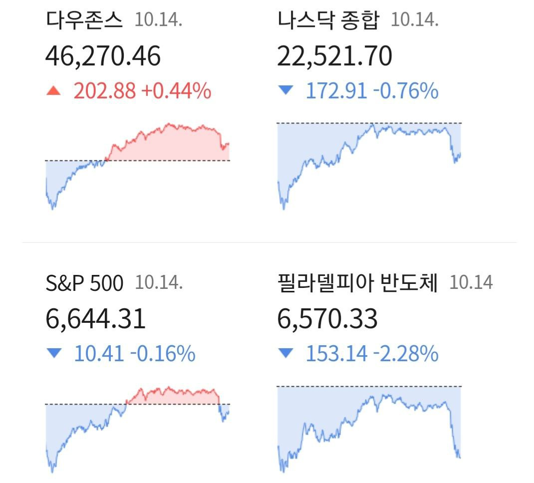 - 10/15 미 증시, 그리어, 파월 의장 발언에 힘입어 반등했지만 트럼프로 인해 재차 매물 출회