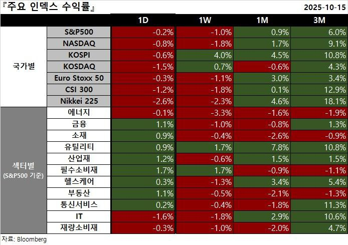 - 이런 가운데 JP모건, 웰스파고 등 주요 금융사들의 양호한 3분기 실적 발표를 시작으로 본격적인 어닝시즌의 시작을 알림.