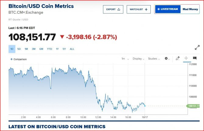 - 비트코인 $108,300 밑으로 하락, 3일 연속 약세.