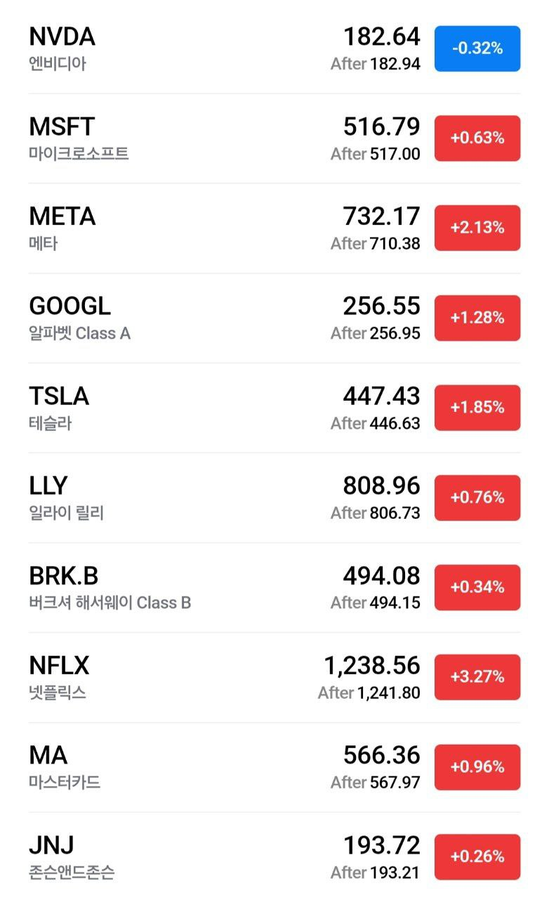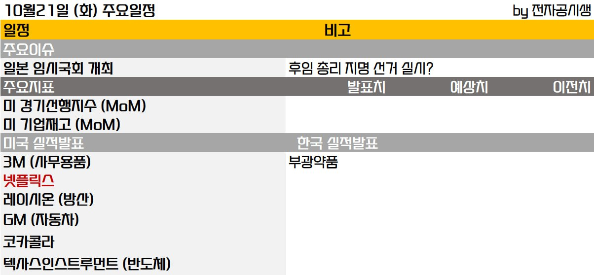 - 넷플릭스(+3.27%)는 실적 발표를 앞두고 강한 상승을 하고 있어 대형 기술주의 실적 개선 기대를 높이고 있다고 평가.